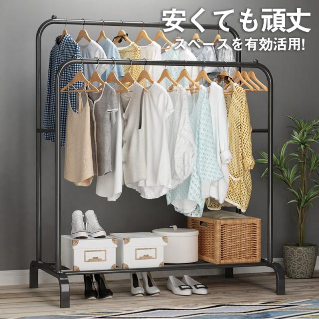 ハンガーラック おしゃれ 頑丈 パイプハンガー 衣類収納 洋服掛けラック 子供 洋服収納 コートハンガー スリム 洗濯物 部屋干し 落ち防止対策 梅雨対策 大容量