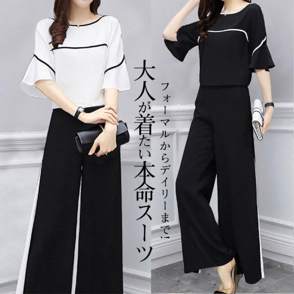 パンツスーツ パンツドレス レディース セレモニースーツ 春夏秋 ママスーツ 一部即納 入学式 卒業式 5分袖 ワイドパンツ 体型カバー 着痩せ 大きいサイズ