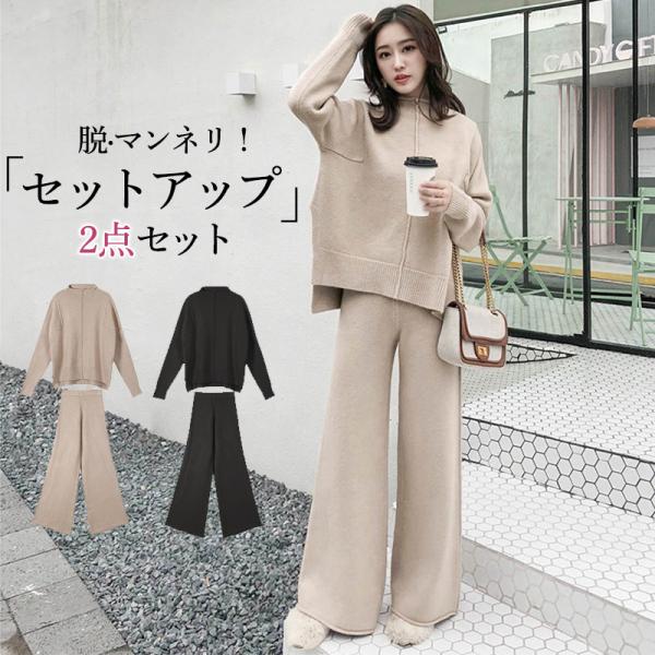 パンツスーツ レディース ニットセーター ワイドパンツ セットアップ 長袖 卒業式 服 母 ママ スーツ 入学式 卒園式 入園式 セレモニー 部屋着