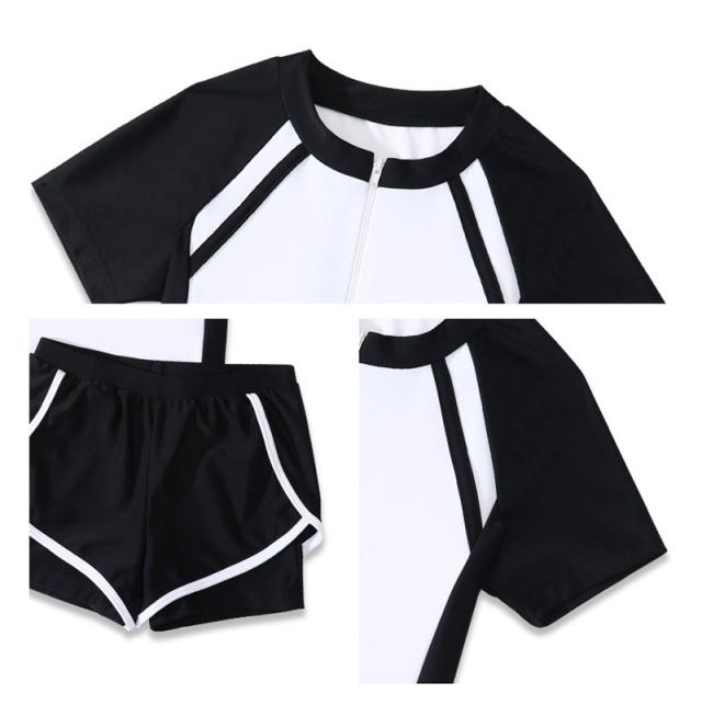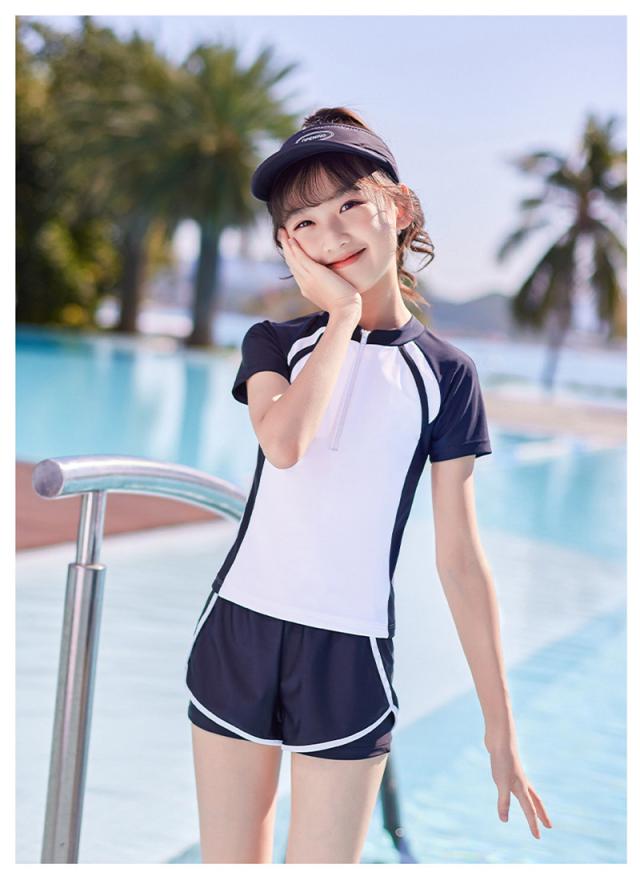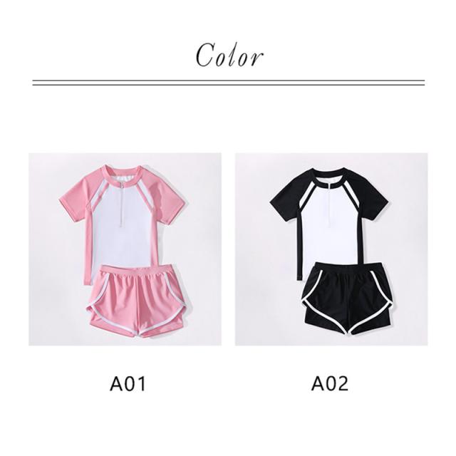 スクール水着 女の子 キッズ 水着 セパレート 短袖 トップス ショートパンツ 2点セット スポーツウエア 一部即納 シンプル ジュニア ラッシュガード 高校生