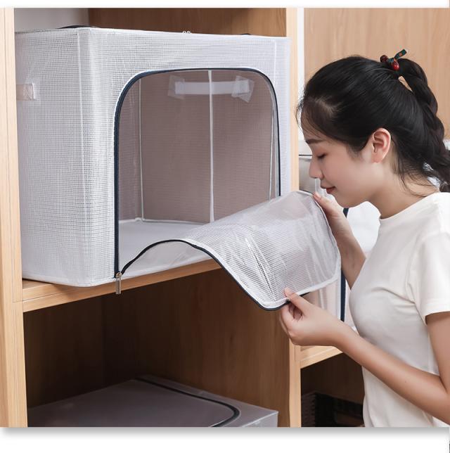 収納ボックス 収納ケース フタ付き 折りたたみ 大容量 衣類用 衣装ケース 透明 鉄骨入り 持ち運び 蓋付き 防塵 防汚 防水 小物 衣類 靴収納