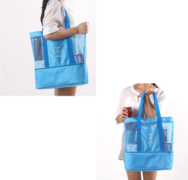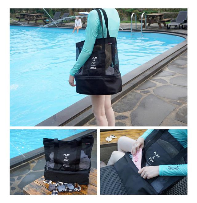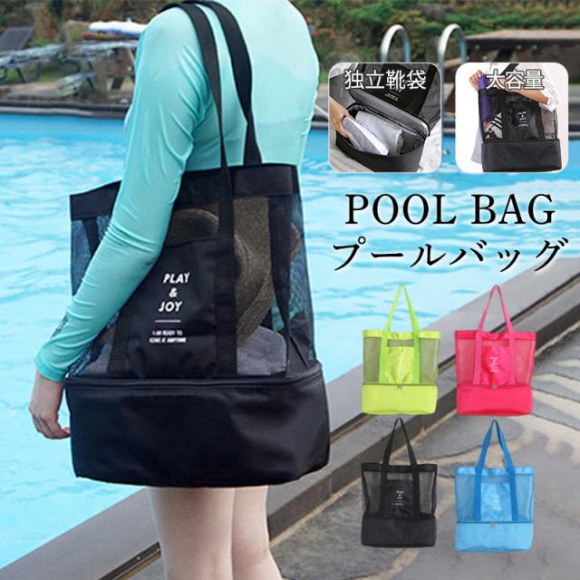 セール中 ビーチバッグ トートバッグ プールバッグ 乾湿分離 メッシュバッグ 肩がけ 手提げ 一部即納 2層式 子供 シューズ収納 大容量 旅行 ジム