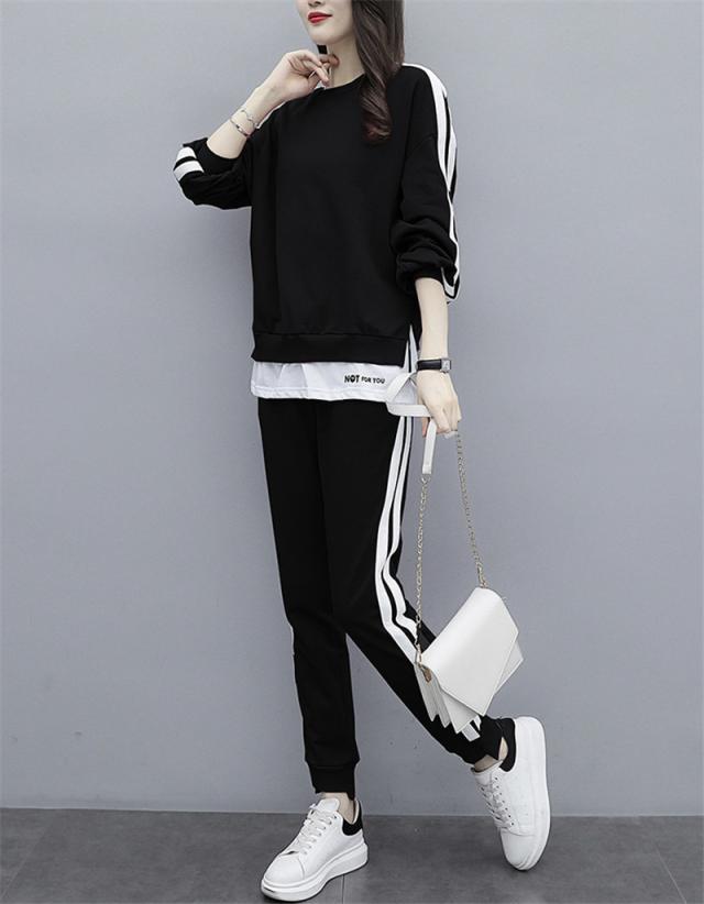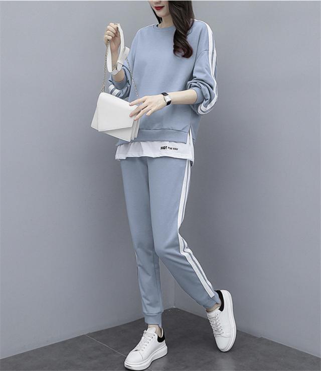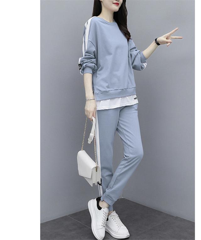 ジャージ レディース 上下セット スウェット 長袖 パーカー 長ズボン 春秋 2点セット 重ね着風 ゆったり 一部即納 運動服 スポーツウェア 大きいサイズ
