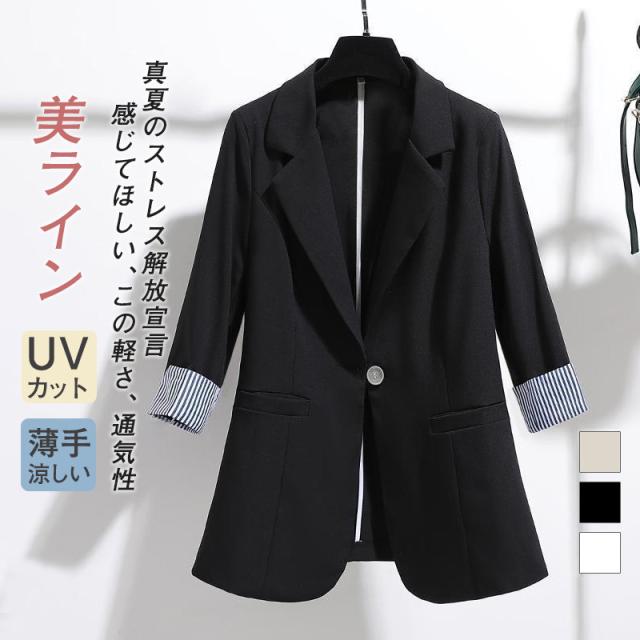 テーラードジャケット スーツジャケット レディース 夏 薄手 サマージャケット 一部即納 ショート丈 ビジネス 7分袖 涼しい 洗える きれいめ 美ライン
