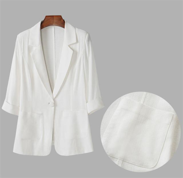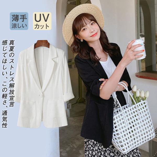 テーラードジャケット スーツジャケット レディース 夏 薄手 サマージャケット 一部即納 綿麻ジャケット 通勤 7分袖 涼しい 洗える きれいめ 美ライン