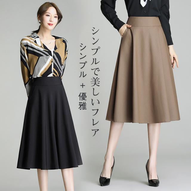 フレアスカート ミモレ丈 レディース 膝丈 スカート フレア ロング丈 膝丈 オフィス ビジネス 就活 送料無料 フォーマル OL 高級感 魅せる