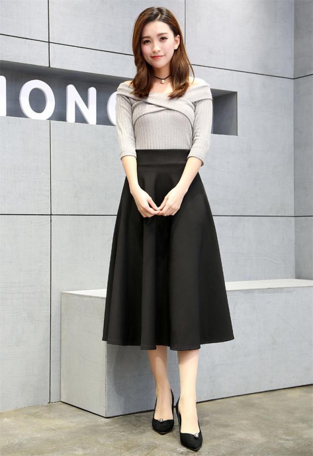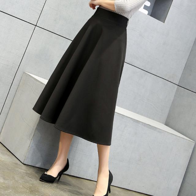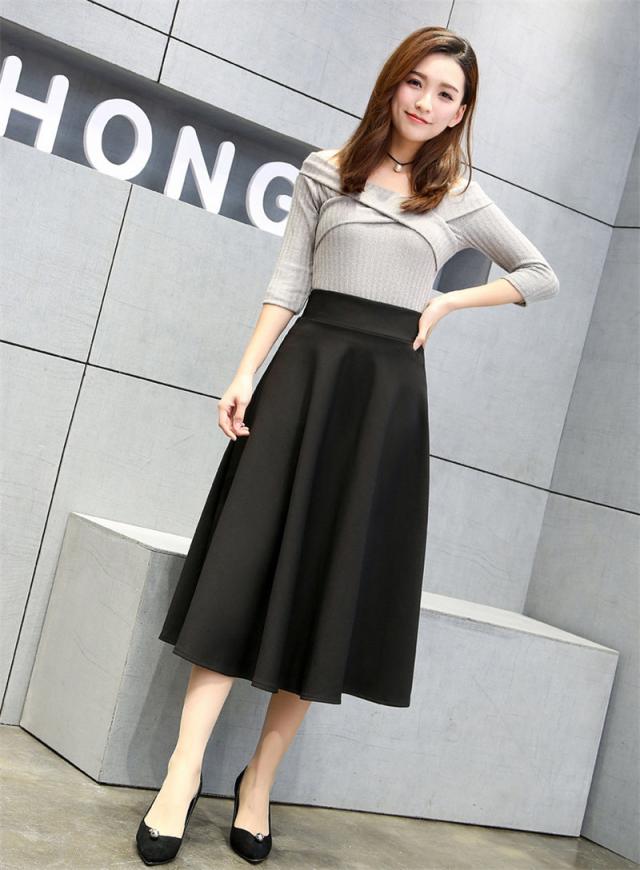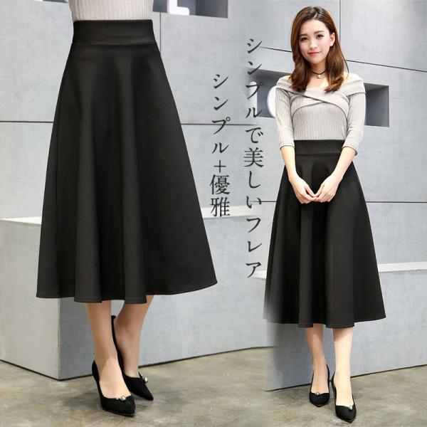 フレアスカート ミモレ丈 レディース 膝丈 スカート aライン ひざ丈 ヘムスカート プリーツ aラインスカート 冬 秋 春 夏 黒 無地 膝丈