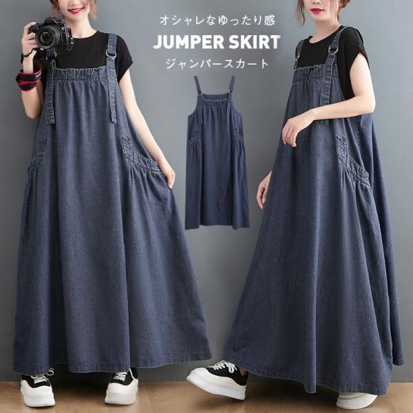 デニムスカート レディース ワンピース サロペット ジャンパースカート デニム オールインワン ロング 大きいサイズ 体型カバー おしゃれ お洒落