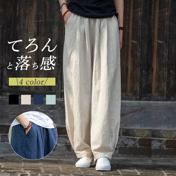 ガウチョパンツ ワイドパンツ スカーチョ ロングパンツ 麻混 ガウチョ レディース スカンツ 一部即納 無地 着痩せ 体型カバー 春夏 ゆったり 大きいサイズ