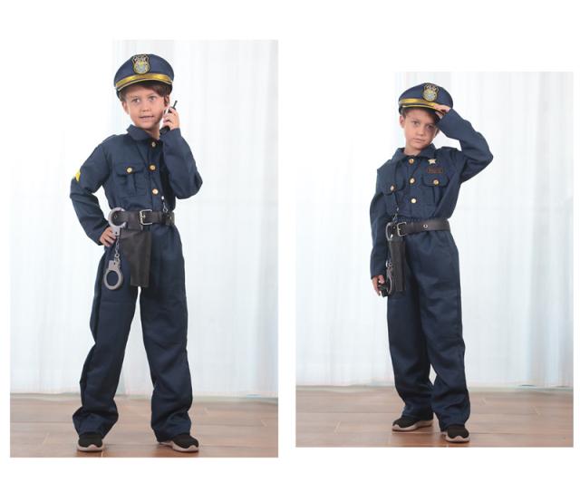 商品詳細:カラー:/【商品説明】メイン素材:ポリエステル 6点セット:トップス+パンツ+帽子+ベルト+ホイッスル+ウォーキートーキー【大人気の子供用ポリスコスチューム】ジャケット・パンツ・帽子・ベルトがセットになった充実の内容に、キッズも大満足☆完全なりきり警官セットで夢を叶えてあげましょう!子供たちが憧れの警察官なりきのコスチュームです。イベント時に目立つこと間違いなしです。ハロウィン、仮装パーティー、クリスマスパーティー、忘年会、文化祭、舞踏会など、様々な場面で活躍できますように。かっこいい警察官のコスチュームで、ハロウィンの人気定番の衣装となっております。いつの時代も、小さな子に人気な職業は見た目がカッコイイ!ユニフォームや道具などの”見た目”に特徴がある仕事です。その”見た目”に拘った衣装を身に着けた途端にテンションを上げてくれます。キーワード:ハロウィンコスプレ 警察 仮装 おまわりさん 婦人警官 演劇 学園祭 文化祭 イベント