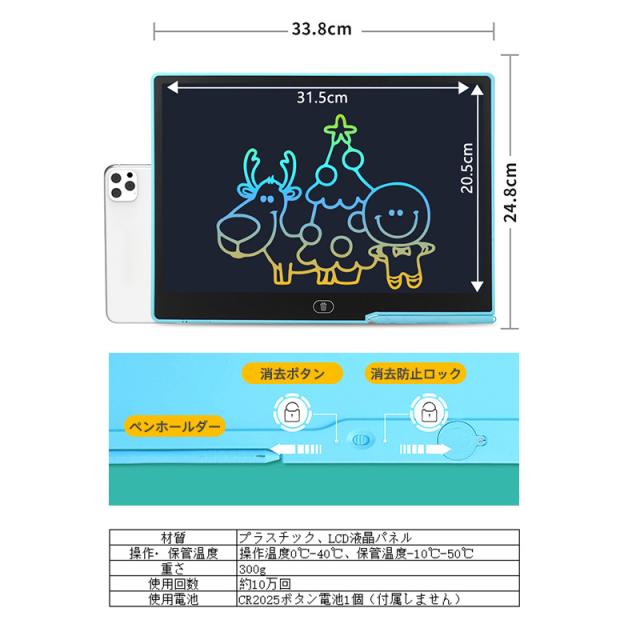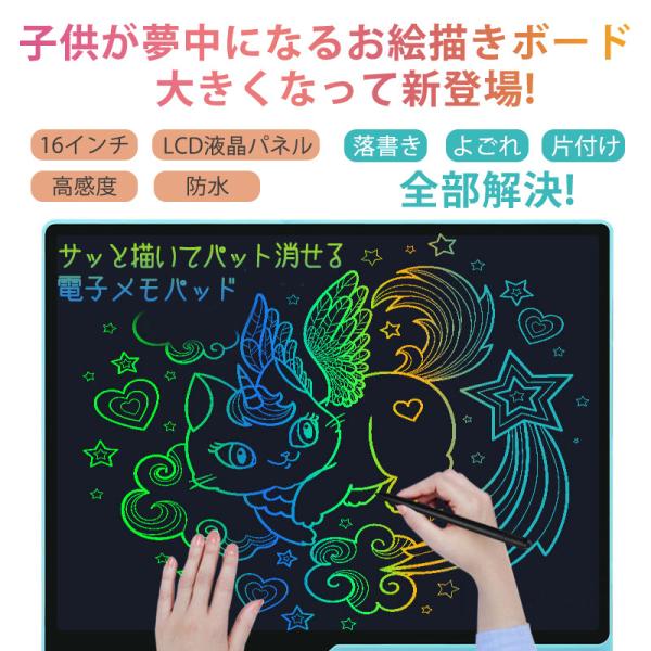 お絵かきボード 大画面 電子メモ 16インチ カラフル 繰り返し書ける お絵描き 落書き 文字練習 知育 メモ帳 子供の日 誕生日 プレゼント