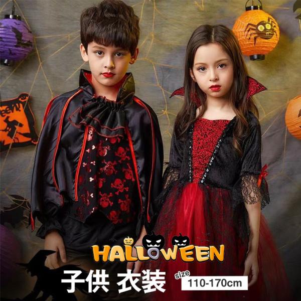 ハロウィン 吸血鬼 ドラキュラ コスプレ 子供 バンパイア デビル 小悪魔 女の子 男の子 一部即納 キッズ コスチューム 魔女 魔法使い 変装 イベント 演出服