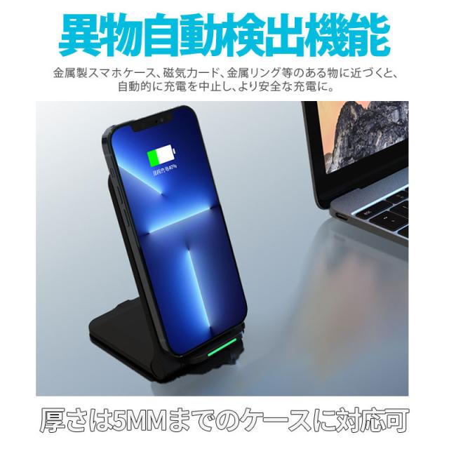 【キーワード】スタンド スマホ iphone 15 14 13 12 11 se pro max 充電器 Qi対応 ワイヤレス 急速充電 高速充電 送料無料【商品説明】15W高速充電仕様、折りたたみ式の設計となり、収納・持ち運びに便利!折り畳んだ状態でも充電できる。【ご注意】:※ACアダプターは付属しておりません、お客様がご用意する必要がございます。2.4A以上対応のアダプタをオススメいたします。・iphone対応機種:iPhone15/Pro/Max、iPhone14/Pro/Max/Mini、iPhone13/Pro/Max/Mini、iPhone12/Pro/Max、iPhoneSE2 (第二世代)、iPhone11/Pro/Max、iPhoneXR、iPhoneXS Max、iPhone XS iPhoneX、iPhone8/Plus・Andriod対応機種:Xperia、Galaxy、AQUOS、Google等Qi対応Andriodスマホ機種
