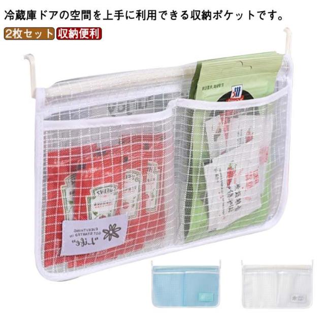 冷蔵庫のドア ドアポケット ティーバッグ 仕切りポケット 2枚セット 冷蔵庫収納 薬袋 化粧品 吊り下げ 収納ポケット 台所 保存容器 小物整理 収納便利 キッチン用品 調味料収納 分類収納 水洗いOK 家庭用 送料無料