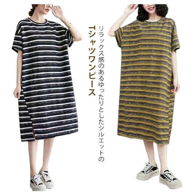ロング Tシャツワンピース レディース 半袖 Tシャツワンピ 夏 ワンピース ロング 着痩せ 膝下 体型カバー カットソー 大きいサイズ ゆったり カジュアル おしゃれ シンプル 体型カバー