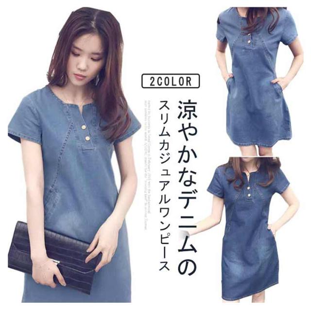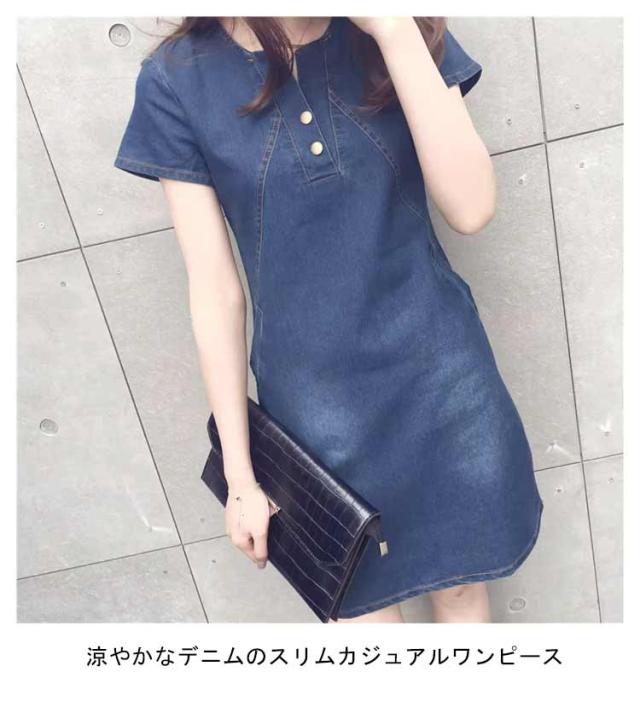 デニムワンピース レディース 切り替え スリム 半袖 夏 膝上丈 ワンピース 半袖ワンピース カジュアル おしゃれ 大きいサイズ 夏服 大人 女性 かわいい 無地 シンプル 可愛い 体型カバー 着?せ 通勤 通学 プレゼント ギフト 送料無料