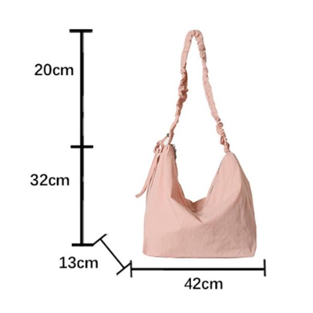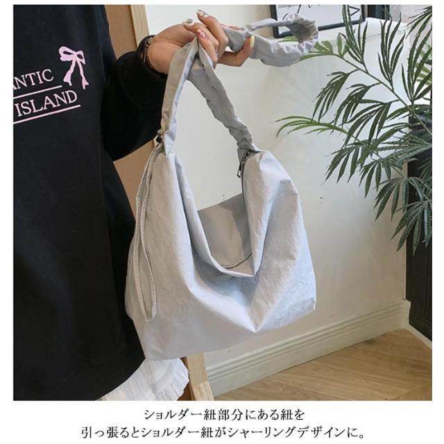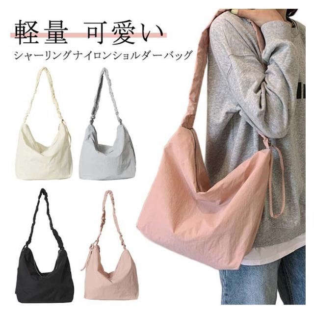 シャーリングナイロンショルダーバッグ ショルダーバッグ レディース ナイロンバッグ 肩掛けバッグ 斜め掛けバッグ BAG A4サイズ カジュアル 軽量 可愛い かわいい 上品 大人 緑 ブラック ホワイト ブルー 白 黒