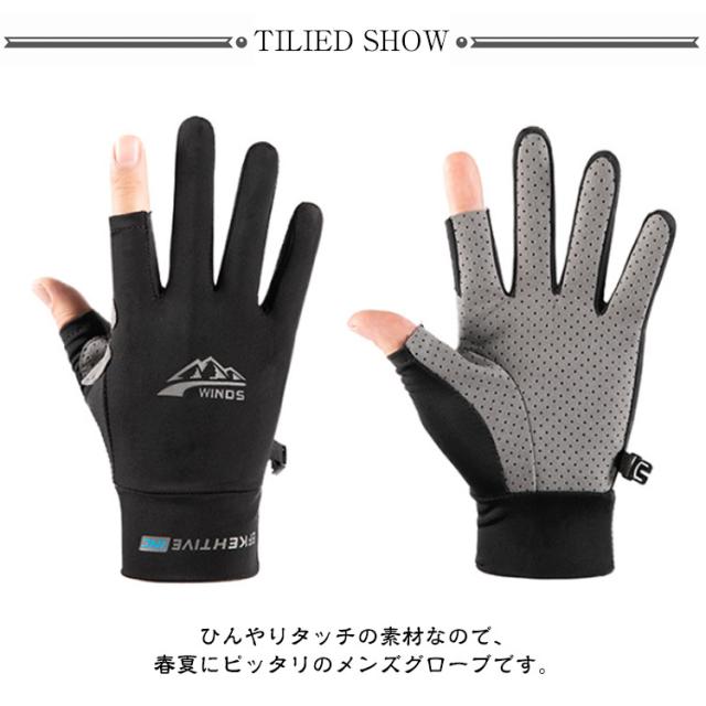 | 【日焼け防止手袋】【冷感】 【スマホ対応】【二指 半指 全指】 ひんやりタッチの素材なので、春夏にピッタリのメンズグローブです。 優れた伸縮性&高弾力、柔らかく快適で、手にフィットし、ソフトな肌触りがあります。 薄手の生地と、手のひらがメッシュになった涼しい使用感の手袋で、ムレにくく涼しく快適です。 手ひら部分には滑り止めが付き、ハンドルがしっかり握って、自動車の運転や自転車する時に最適、様々なアウトドアに大活躍してくれます。 タッチ感度が抜群、大部分の電子製品のタッチスクリーンに操作できます。 グローブを着用したままスマートフォンやタブレットPC等の操作も可能です。 UVカット手袋をつけても動きやすいです。 また、高耐久性な生地を使用して、縫製もしっかりしているので、アウトドア、日常使用にも最適です。 | |