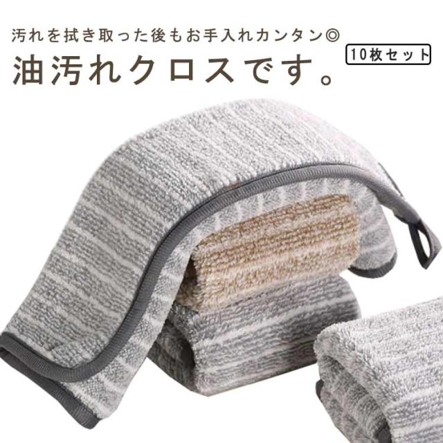 油汚れクロス 10枚セット キッチンクロス マイクロファイバー 洗剤不要 ループ付き ふきん 台拭き 雑巾 キッチンタオル 掃除用 キッチン用品 台所 油拭き 電子レンジ 冷蔵庫 IH・ガスコンロ 送料無料