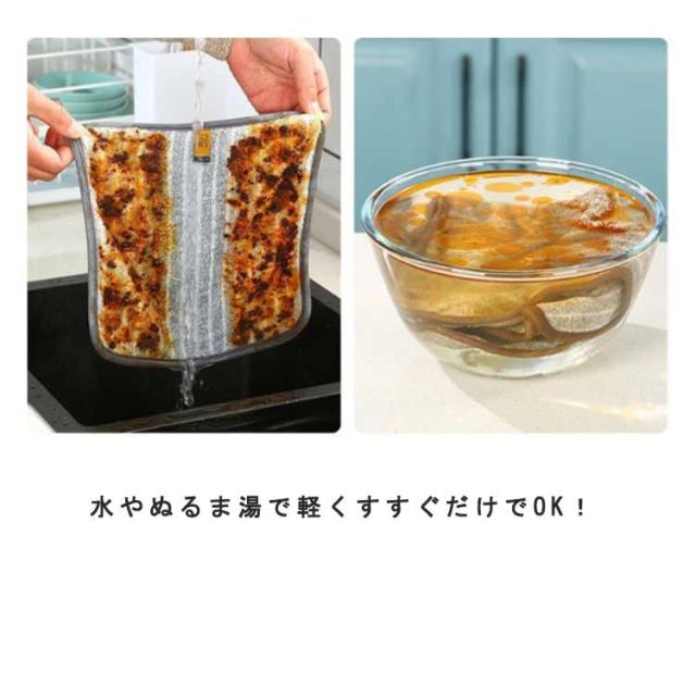 | 汚れを拭き取った後もお手入れカンタン◎油汚れクロスです。 使い方は簡単、水に濡らしたクロスを絞って、汚れを拭きとるだけ! ガスレンジや、IHコンロ周り、電子レンジや冷蔵庫にも水だけだから安心してご使用いただけます。 水やぬるま湯で軽くすすぐだけでOK! 洗剤を使わずに水で濡らしてサッと拭き取るだけで油汚れがよく落ちます。 使った後は吊り下げループで吊り下げておけます。 10枚セットで毎日のお手入れの強い味方です! | |