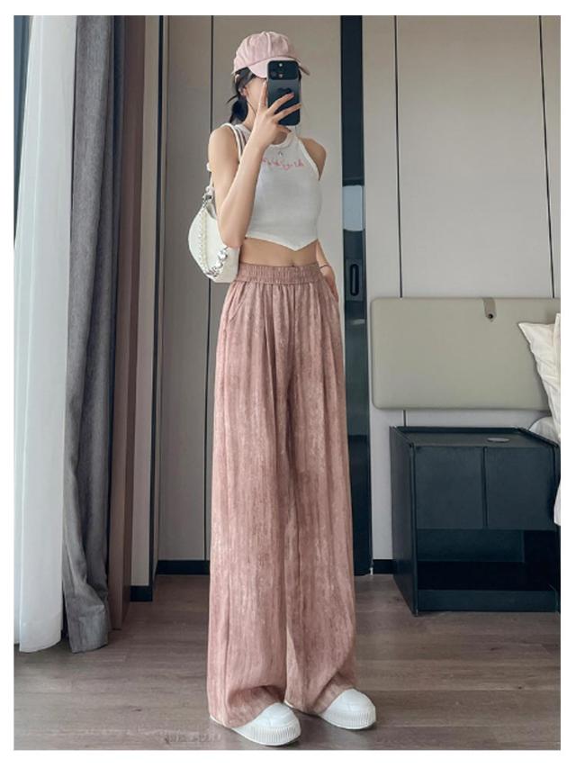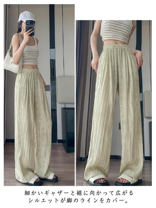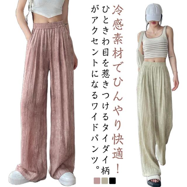 ワイドパンツ レディース タイダイ柄 パンツ 夏 涼感 ロングパンツ 通気性 カジュアル 涼しい 爽やか 薄手 冷感素材 シワ加工 タイダイ 総柄 ウエストゴム ボトムス シンプル 着痩せ 送料無料