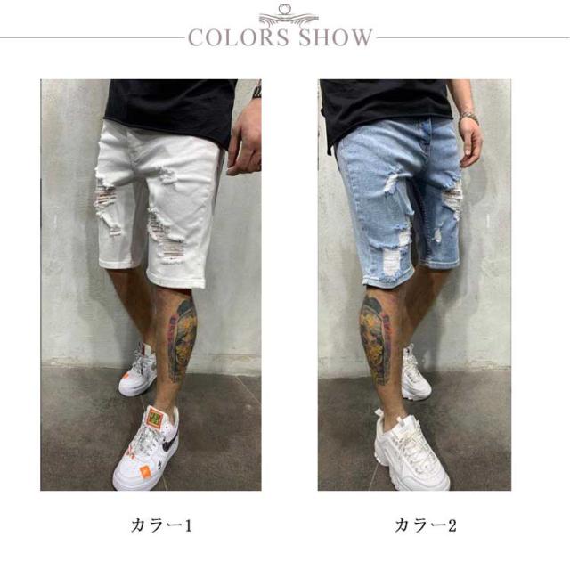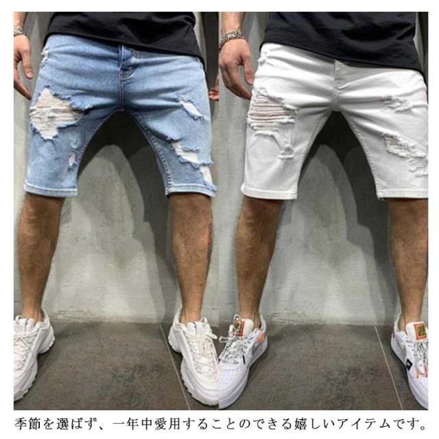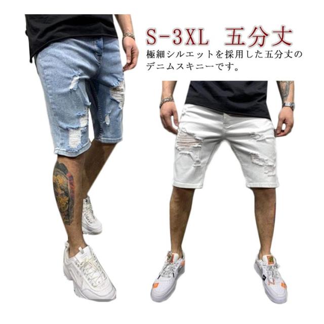 ダメージ ジーンズ スキニー メンズ ショートパンツ 夏 五分丈 デニムパンツ ダメージデニムパンツ ハーフパンツ 半ズボン スリム ショーツ ハーパン カジュアル おしゃれ S M L XL 2XL 3XL