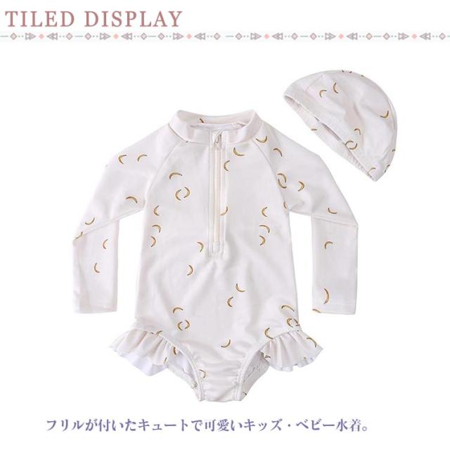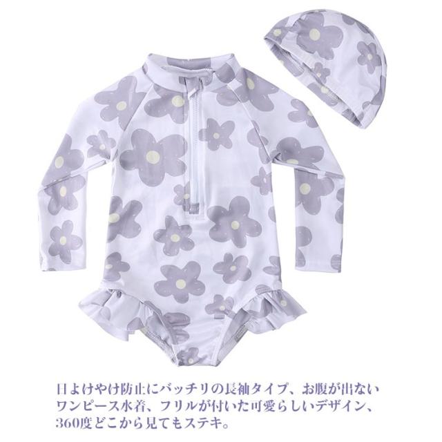 スイムキャップ付き 2点セット キッズ 水着 女の子 ワンピース ラッシュガード 可愛い フリル 長袖 子供 80 90 100 110 120 130 スイムウェア 子ども 子供水着 連帯水着 小学生 赤ちゃん ベビー スイミング スーツ 海水浴 川 海 プール 韓国ファッション 送料無料