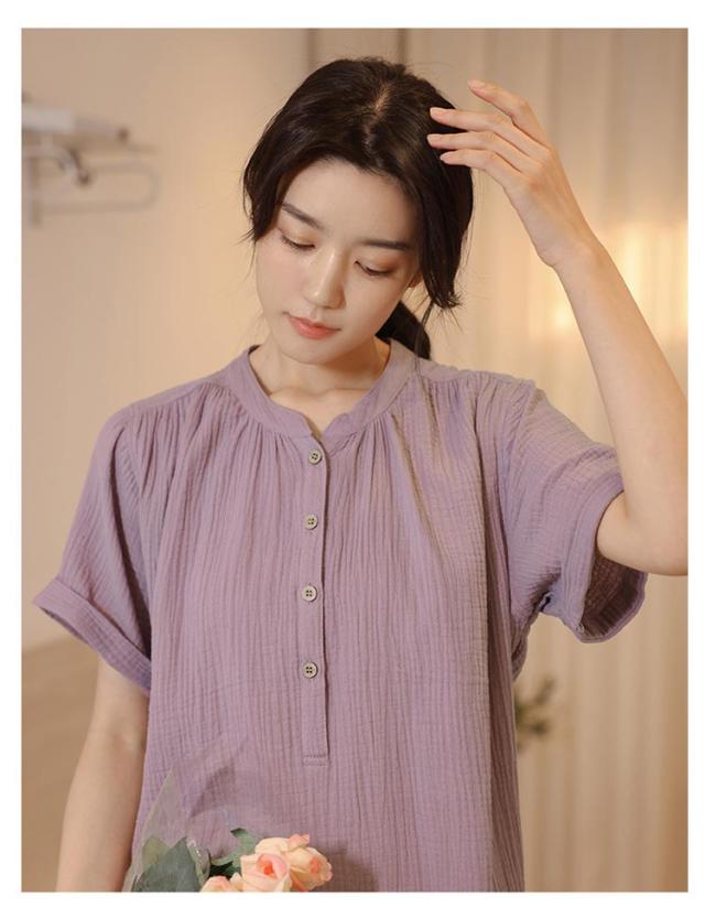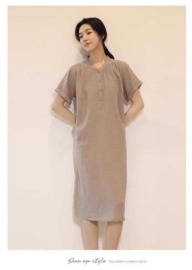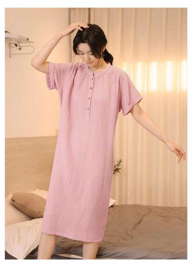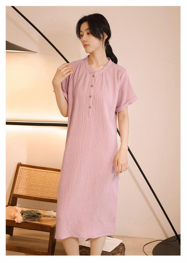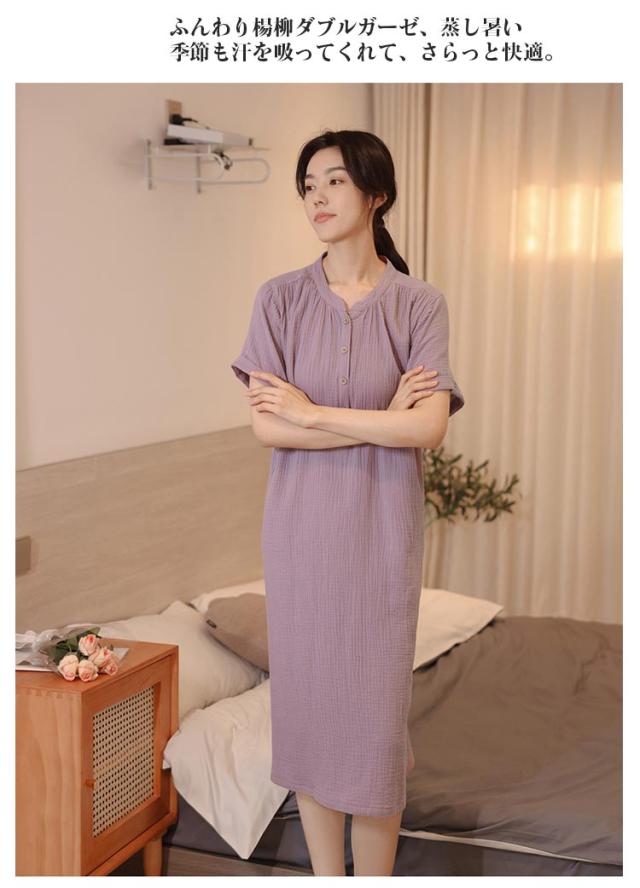 ネグリジェ 前開き パジャマ ワンピース ダブルガーゼ 楊柳ガーゼワンピース 半袖 ルームワンピース 綿 コットン 春 夏 部屋着 パジャマ ワンピース ふんわりガーゼ 2重ガーゼ 無地 ラウンドネック レディース 授乳 送料無料