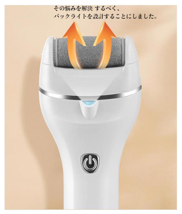 | ヒールケアスムースは電動式だから気になるところに軽くあてるだけ! 古い角質をケアします。 ローラー360°マッサージ&リペア 3段階のスピードでインテリジェントな角質除去 2週間に1回のケアで足裏滑らか ヘッド部分は水洗い可能 お手入れ簡単で清潔な状態を保ちます ボタンを押すだけ!付け替えラクラク LEDライトで足元を照らします。LEDバックライト設計!隅々まで脚の角質を見落とさない。 角質リムーバー使用時、暗い場所では綺麗に角質や タコを除去することができません。 その悩みを解決 するべく、バックライトを設計することにしました。 約1時間でスピード充電 USB接続による充電式で さらに使いやすい。 環境に優しいリチウム電池内蔵、約1時間でフル充電。 お客様のためのこだわり設計!ワンクリック式ボタン。ボタンで電源ON/OFF。スピーディーな操作で便利! USB接続で充電できる。電源コードの束縛から解放!いつでもどこでも使える新体験! 研磨ヘッド交換ボタン。両側のボタンを押すと研磨 ヘッドを取り外すことができます。 ヘッド部に角質がつきっぱなし。そんな事はありません。丸ごと水洗い出来て綺麗に保管できます。 ※充電ランプが赤色に表示されますと、止まり易くなりますのでしっかりと充電してお使いください。 | |