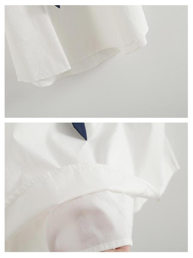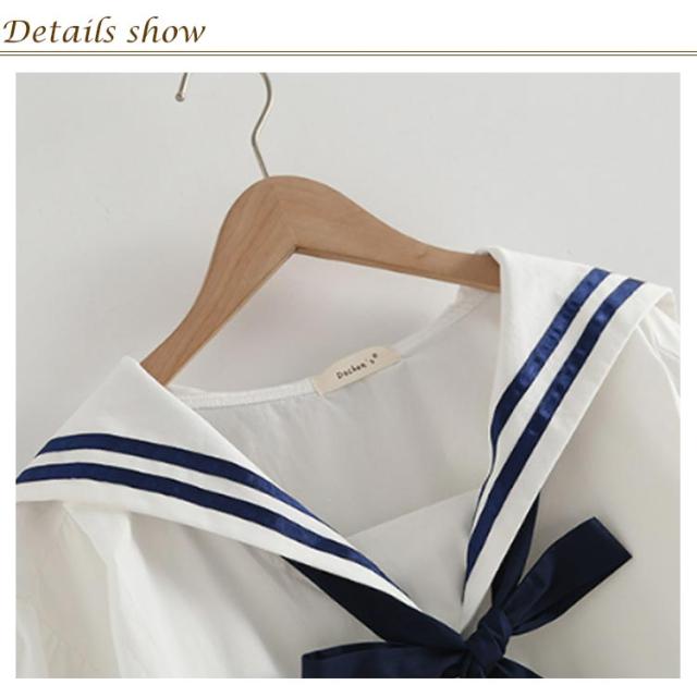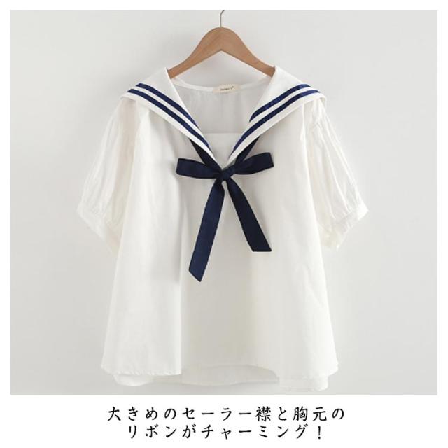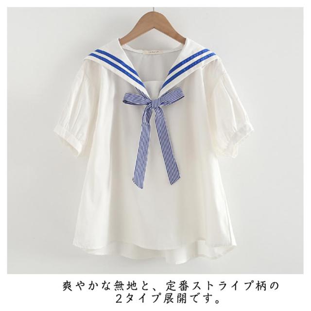 レディース シャツ 森ガール セーラー 学生服 半袖 高校生 無地 中学生 文化祭 プルオーバー 制服 セーラーカラー ストライプ柄 学園祭 セーラー 日系 ゆったり 可愛い