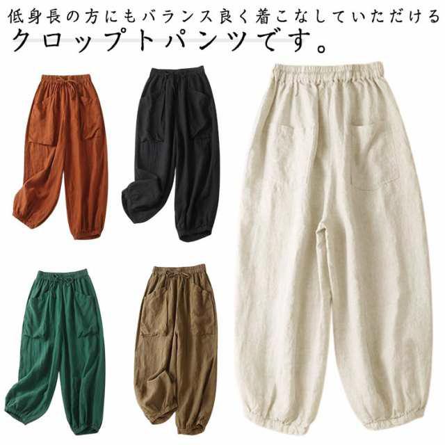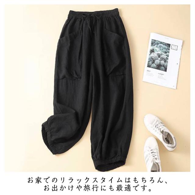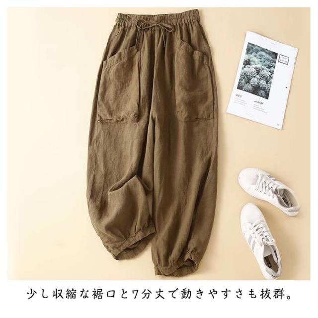 体型カバー 麻 リネンパンツ 夏用 サルエルパンツ リネン バルーンパンツ パンツ ゆったり 大きいサイズ レディース ウエストゴム コクーンパンツ 春夏 カジュアル 20代 30代 40代