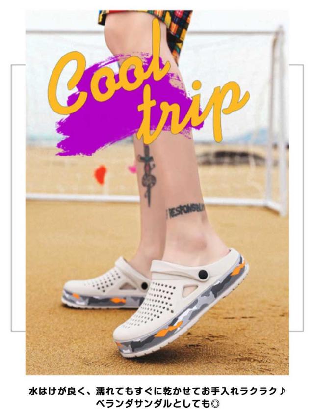 | 夏には欠かさない一足!スリッパ+サンダル両用のシューズです。 アッパー部分に穴を空け通気性を確保し清涼感のある履き心地を実現します。 クッション性の高いソールを採用しているため、長時間の使用でも疲れにくいです。 水はけが良く、濡れてもすぐに乾かせてお手入れラクラク♪ベランダサンダルとしても◎ 可動式のベルトは後ろに動かせばクサンダルタイプとなり、前に動かせばクスリッパタイプとなり。 事務所、オフィス、社内、室内履き替え用、ショッピング、お出かけなどにも魅力的! | |