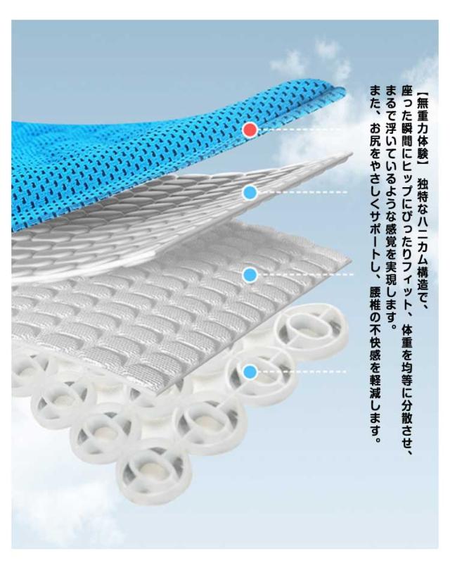 座布団 ゲルクッション ハニカム構造 車用 在宅勤務 クールシート チェアクッション 冷感 ジェルクッション 無重力 通気性 体圧分散 お尻が痛くない 蒸れない 低反発 オフィス 車椅子 自宅用 洗える 暑さ対策