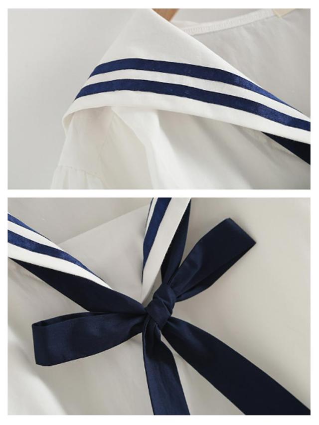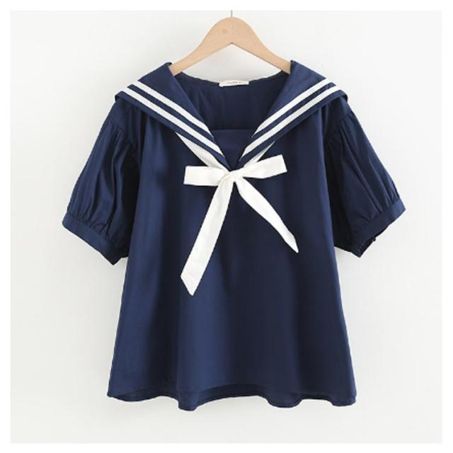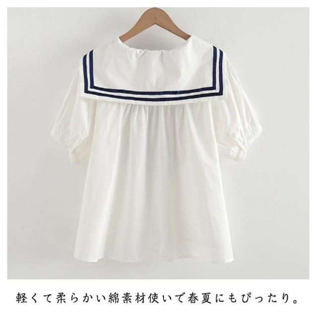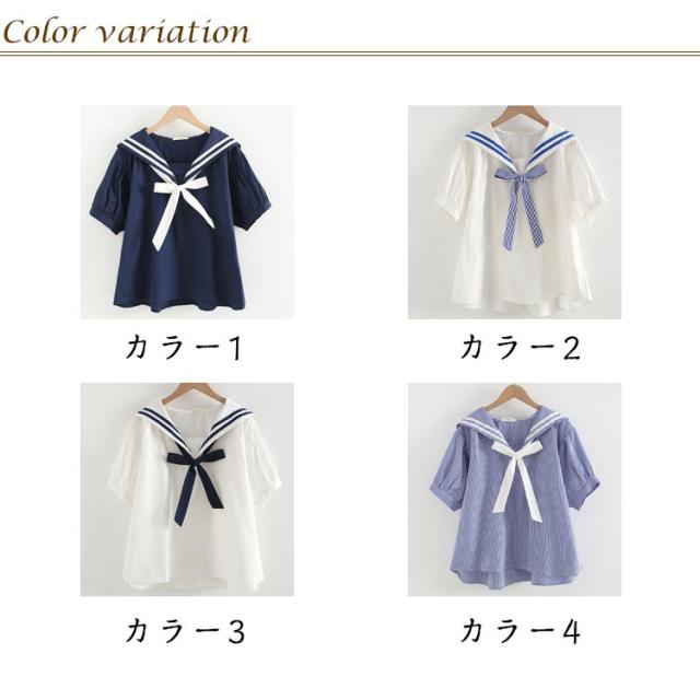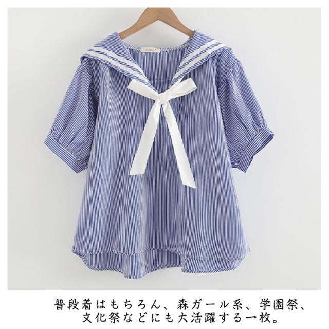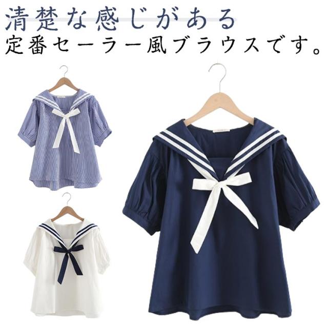 学園祭 ブラウス シャツ 日系 レディース セーラー 学生服 森ガール 中学生 半袖 プルオーバー 制服 無地 ストライプ柄 セーラーカラー 文化祭 セーラー ゆったり 可愛い