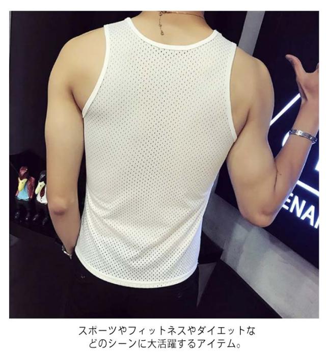 タンクトップ タンクトップ メッシュタンクトップ トップス 蒸れない ノースリーブ スポーツウエア セクシー 涼しい インナー ラウンドネック スポーツ 男性 肌着 下着 メンズ 細身 袖なし フィットネス ダイエット 送料無料 速乾 通気 大きいサイズ 無地 シンプル