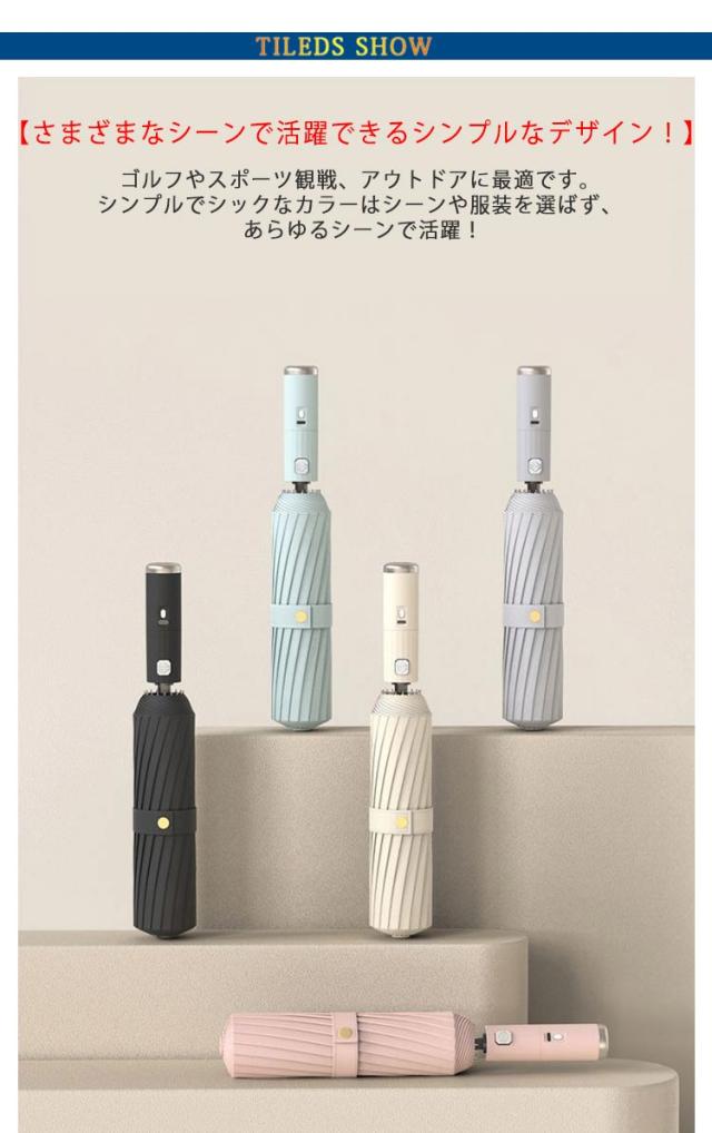 | 【晴雨兼用涼風扇風機付き傘】傘の内側に小型のファンを搭載した、扇風機付き日傘です。近い距離で真上から風があたるので、汗をかいた頭や顔に風があたると気化熱でしっかりと冷やしてくれます。 【U V遮光率】U Vカット率99%、一級遮光率99%なのでしっかり紫外線対策!紫外線カット99%と日光の遮断効果に加え、手のファンからの送風により、まるで木陰の様な涼しさと快適さが感じられます。 【手のひらに収まるサイズ】操作は簡単!手元のボタン押すことによって、内蔵されたによって手から風が送られる仕組みです。 【ワンタッチ自動開閉式】自動開閉機能が備わり、片手でワンタッチ操作できる折りたたみ傘です。 【さまざまなシーンで活躍できるシンプルなデザイン!】ゴルフやスポーツ観戦、アウトドアに最適です。シンプルでシックなカラーはシーンや服装を選ばず、あらゆるシーンで活躍! 【耐久性・耐風骨格】耐久性のあるガラス繊維&アルミニウム合金製傘骨を採用し、錆びにくく、一般的な傘よりはるかに頑丈で、豪雨、強風にもご安心できます。 | |