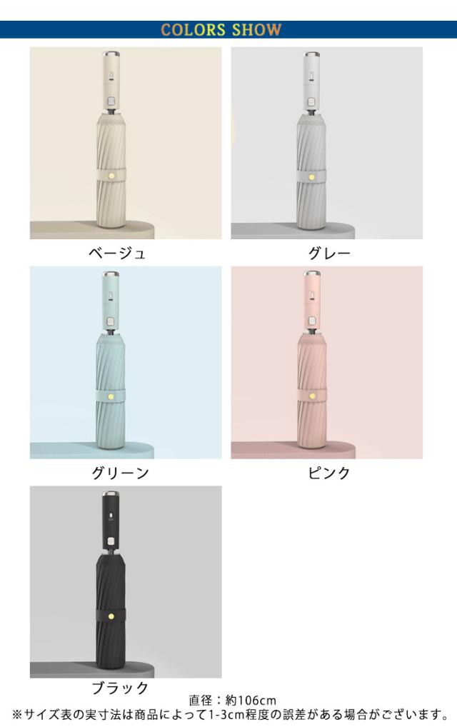 | 【晴雨兼用涼風扇風機付き傘】傘の内側に小型のファンを搭載した、扇風機付き日傘です。近い距離で真上から風があたるので、汗をかいた頭や顔に風があたると気化熱でしっかりと冷やしてくれます。 【U V遮光率】U Vカット率99%、一級遮光率99%なのでしっかり紫外線対策!紫外線カット99%と日光の遮断効果に加え、手のファンからの送風により、まるで木陰の様な涼しさと快適さが感じられます。 【手のひらに収まるサイズ】操作は簡単!手元のボタン押すことによって、内蔵されたによって手から風が送られる仕組みです。 【ワンタッチ自動開閉式】自動開閉機能が備わり、片手でワンタッチ操作できる折りたたみ傘です。 【さまざまなシーンで活躍できるシンプルなデザイン!】ゴルフやスポーツ観戦、アウトドアに最適です。シンプルでシックなカラーはシーンや服装を選ばず、あらゆるシーンで活躍! 【耐久性・耐風骨格】耐久性のあるガラス繊維&アルミニウム合金製傘骨を採用し、錆びにくく、一般的な傘よりはるかに頑丈で、豪雨、強風にもご安心できます。 | |