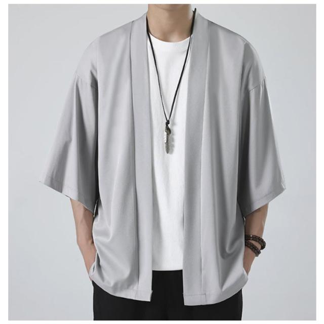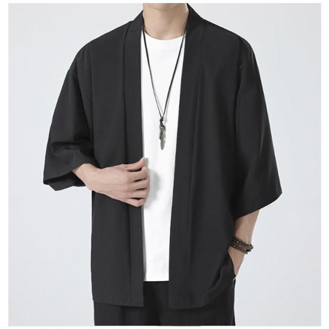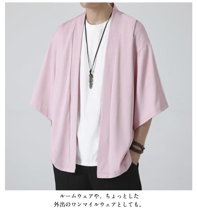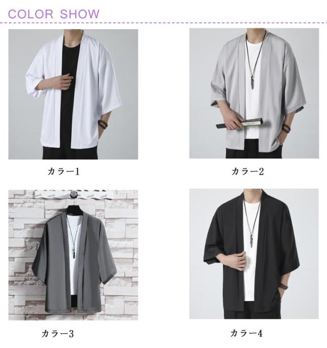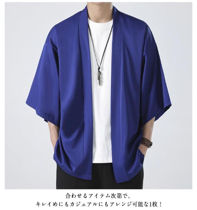 冷房対策 和装 半袖 サマーカーディガン 接触冷感 七分袖 着物 法被 薄手 無地 カジュアル カーディガン 和風 上着 春夏 アウター 大人用 大きいサイズ 和式 半被 M 甚平 部屋着 父の日 サマーカーディガン ルームウェア ライトアウター L XL 2XL 3XL 4XL