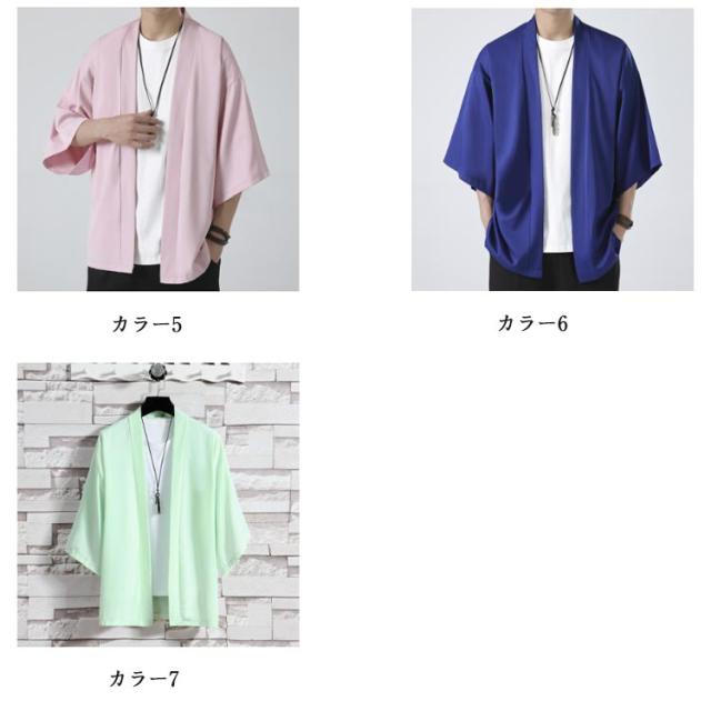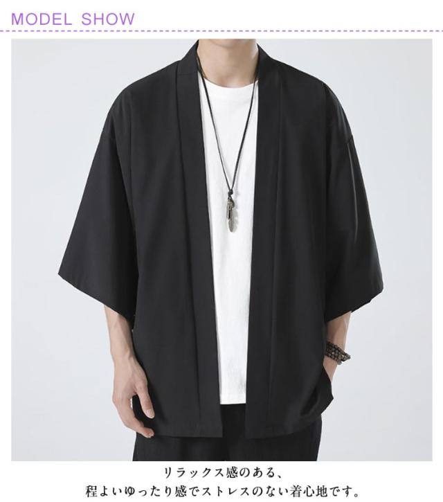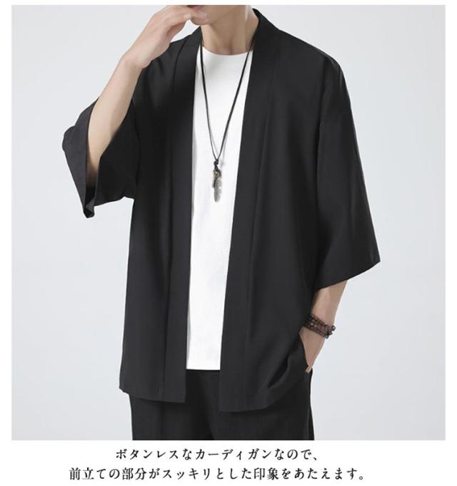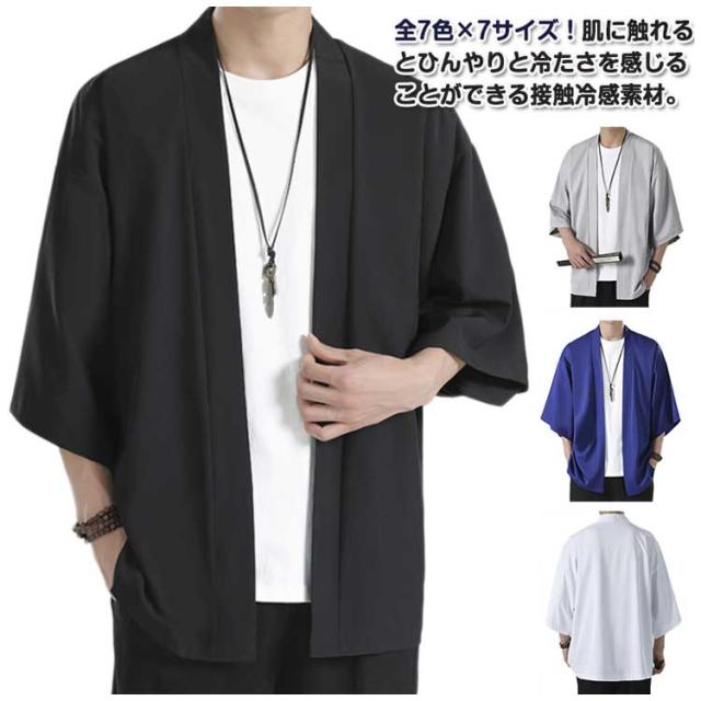 七分袖 和風 大人用 L 着物 薄手 カーディガン 大きいサイズ 和装 ライトアウター 半袖 無地 上着 法被 和式 アウター サマーカーディガン 春夏 接触冷感 半被 カジュアル 甚平 部屋着 父の日 冷房対策 ルームウェア M サマーカーディガン XL 2XL 3XL 4XL