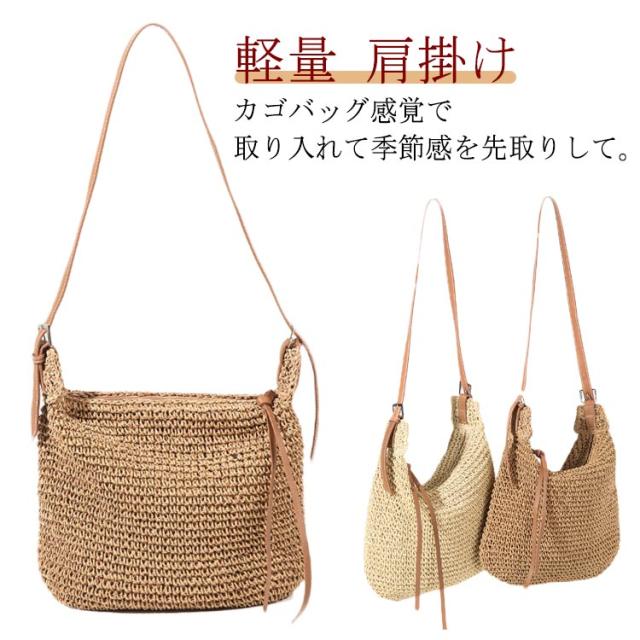 軽量 かわいい かごバッグ おしゃれ ファスナー開閉 ショルダーバッグ カバン 大人 夏バッグ 肩掛け 鞄 リゾート かばん かごバッグ ビーチ ナチュラル 春 夏
