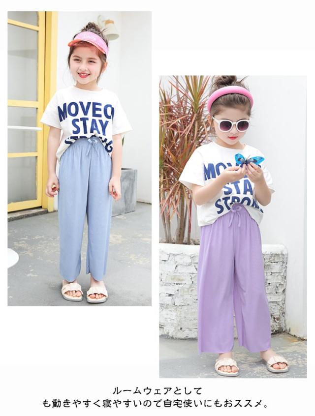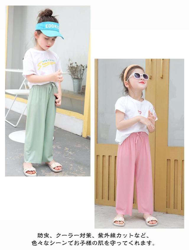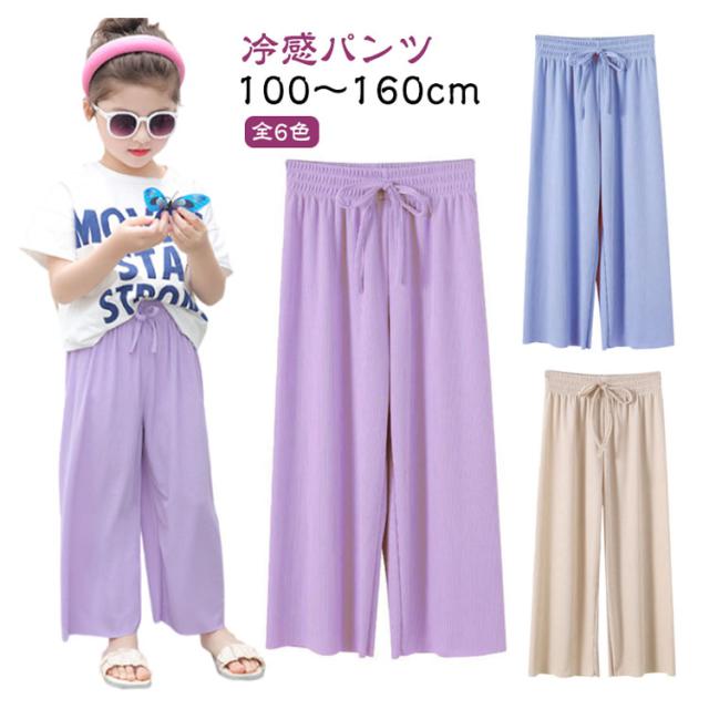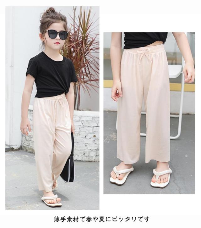 女の子 ワイドパンツ 夏 ジュニア ボトムス 子供服 ゆったり アイスシルク ズボン キッズ パンツ ワイドパンツ 軽量 サラサラ 接触冷感 ロングパンツ 薄手 ガールズ カジュアル シンプル ルームウェア 100 110 120 130 140 150