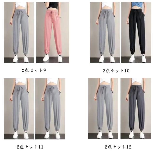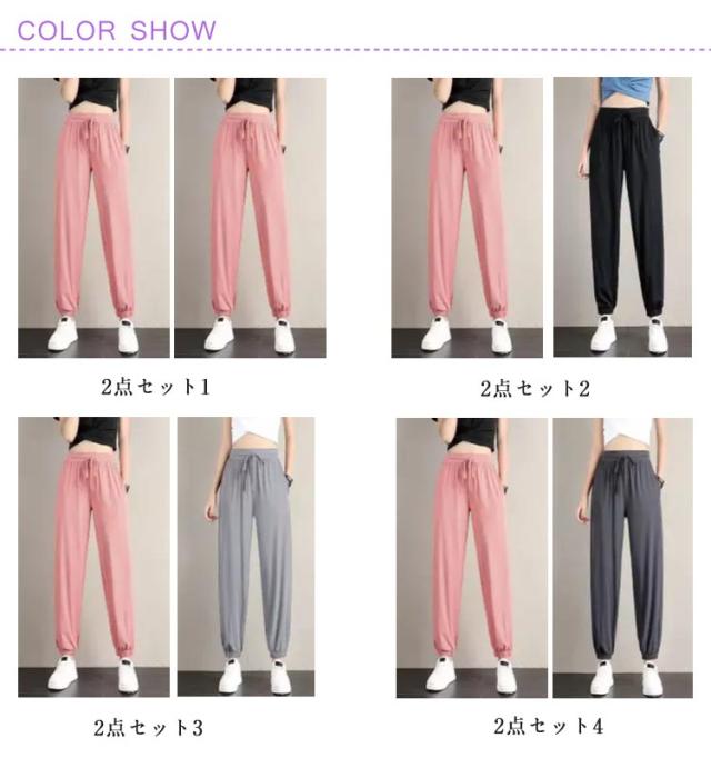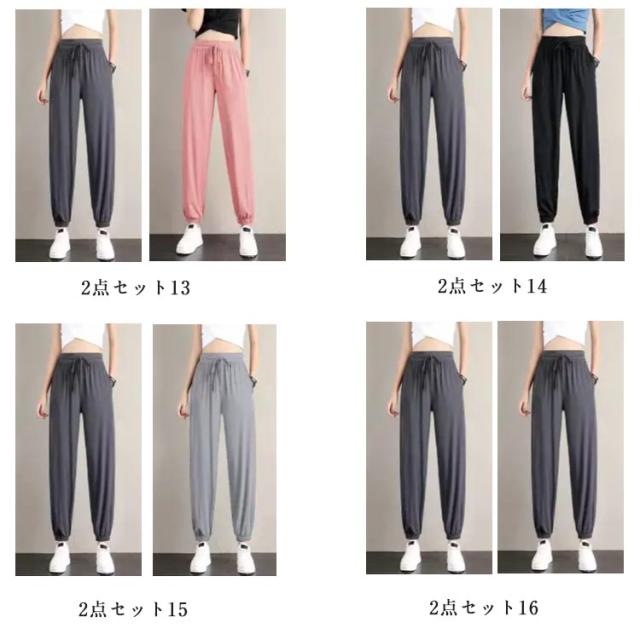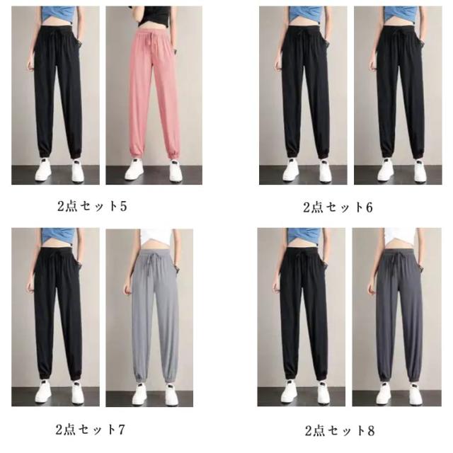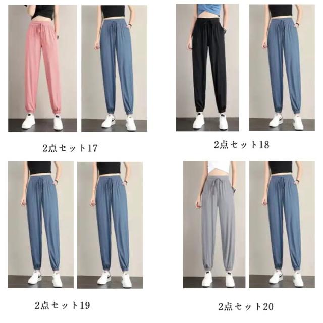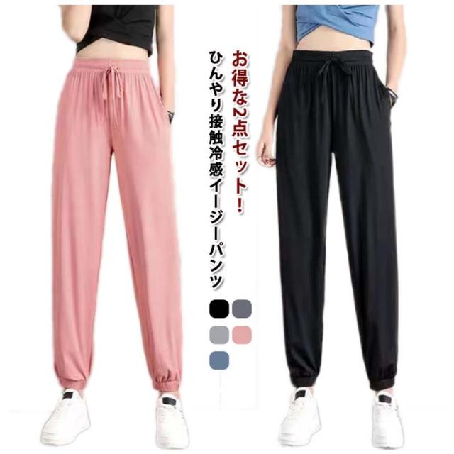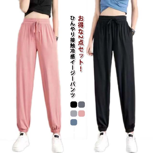 スポーツ 【2点セット】冷感 レディース 【2点セット】冷感 接触冷感 冷感パンツ ひんやり 薄手 部屋着 涼しい イージーパンツ ジョガーパンツ ゆったり 大きいサイズ ランニングパンツ ルームウェア ポケット付き S M L XL 2XL