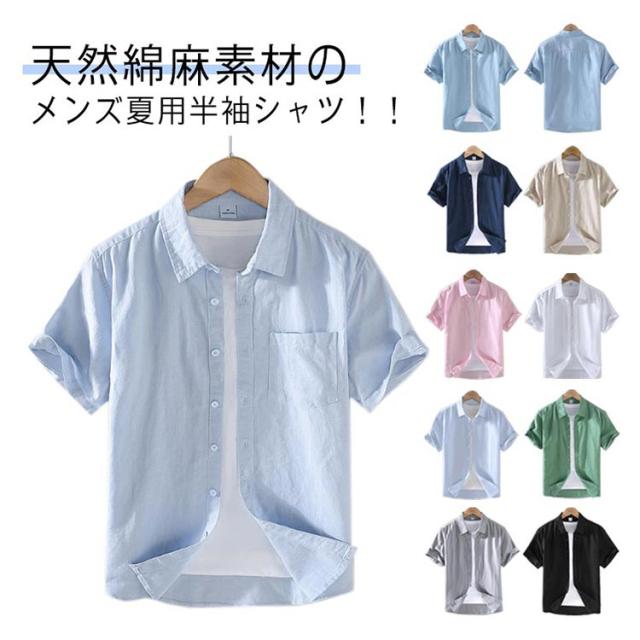 リネンシャツ 綿 麻 涼しい 半袖シャツ メンズ 綿麻シャツ コットンリネン 無地 キレイめ カジュアルシャツ 夏服 春服 リネンシャツ おしゃれ 父の日 プレゼント ギフト