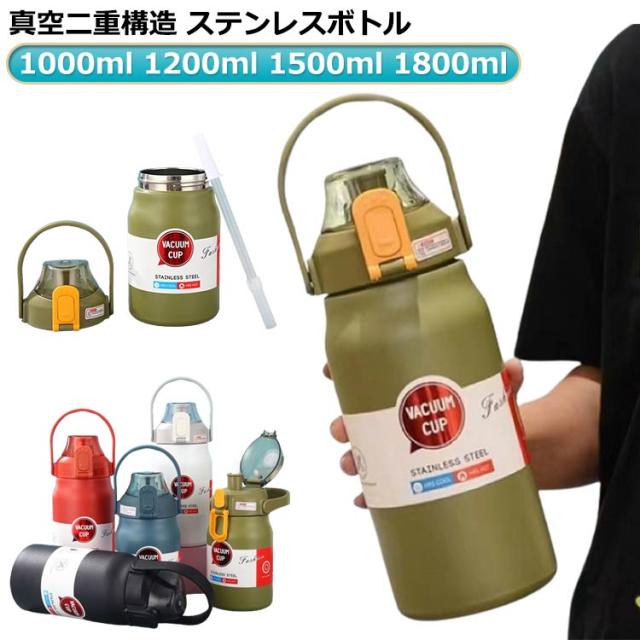 水筒 1200ml ステンレスボトル 保温 1500ml 直飲み 1000ml 1.5リットル 1800ml 真空二重構造 1.2リットル 1.8リットル 魔法瓶 ステンレス 大容量 真空 保冷 1.0リットル ストロー付き 洗いやすい 保温ボトル 軽量 キッズ こども 大人 おしゃれ