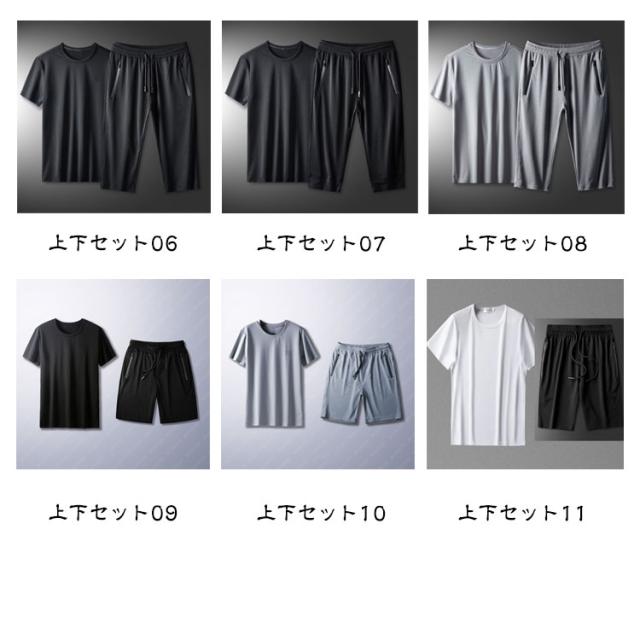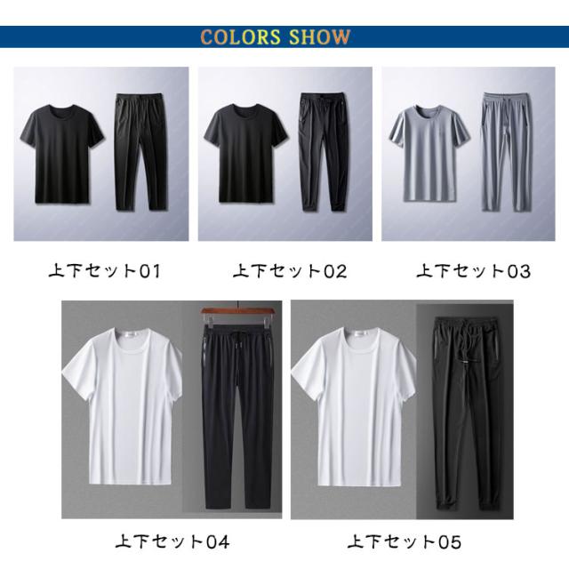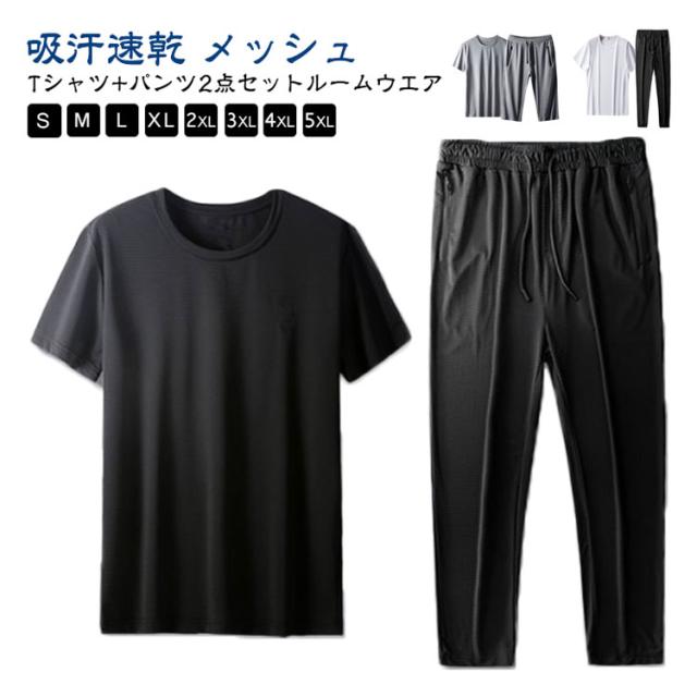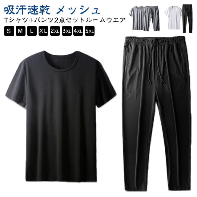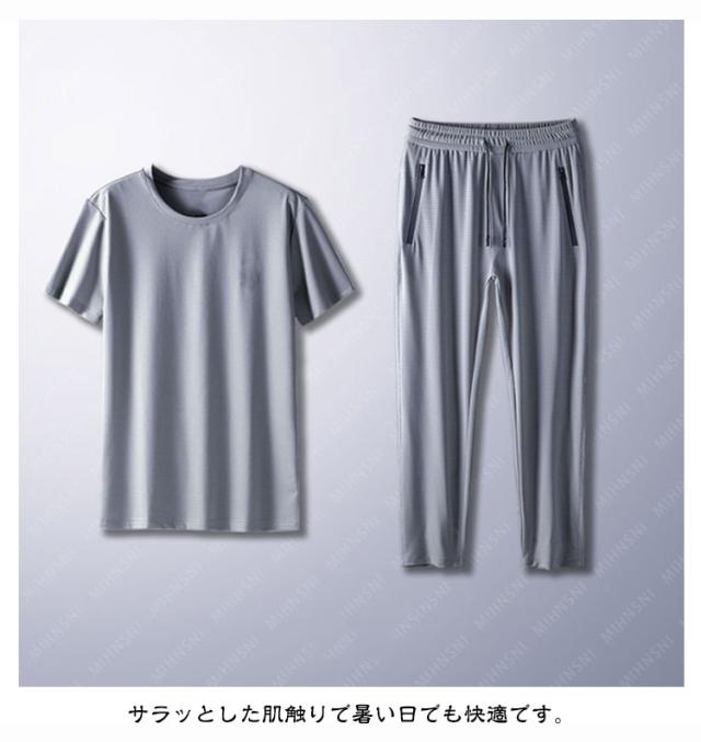 5分丈パンツ 接触冷感 メンズ 涼しい 接触冷感 3タイプ 半袖 夏 ロングパンツ 上下セット Tシャツ 7分丈パンツ 無地 セットアップ 吸汗速乾 通気性 ストレッチ ルームウェア メッシュ 軽量 部屋着 夏服 カジュアル スポーツ 運動着