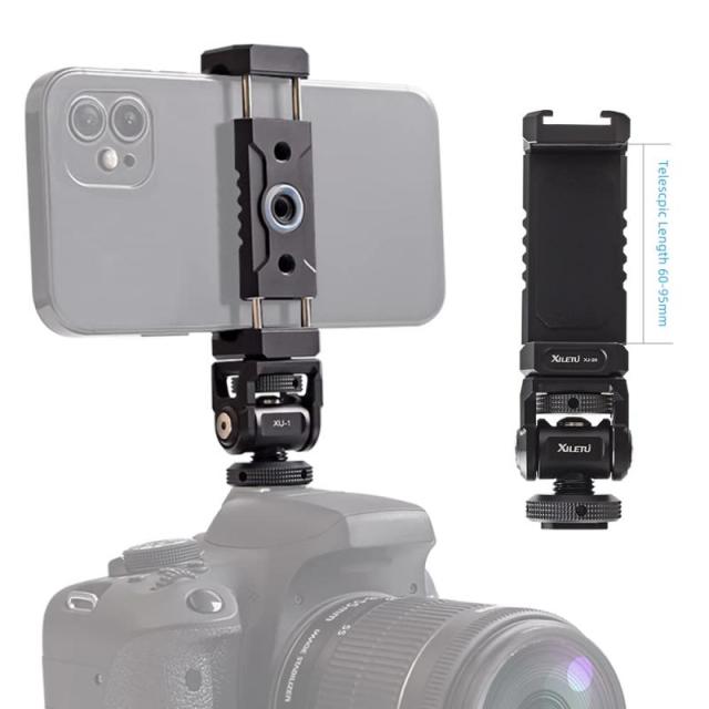 XILETU 電話クリップホルダー, デジタル一眼レフカメラ用 1/4ホット靴ネジアダプター三脚 マウント,電話クリップブラケットスタンド60cm拡張可能 スマホ/雲台/三脚などに対応