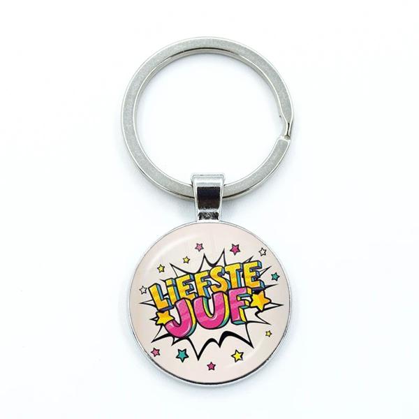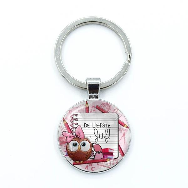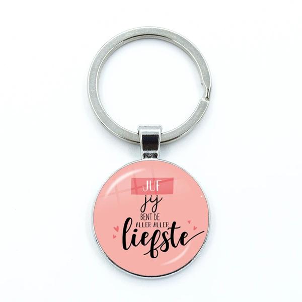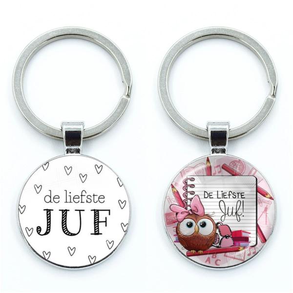 Vorde liefste juf sleutelHangerガラスキーホルダーキーanneauポーテclefベッドanktjuf cadeau文字ありがとうあなたの先生の贈り物