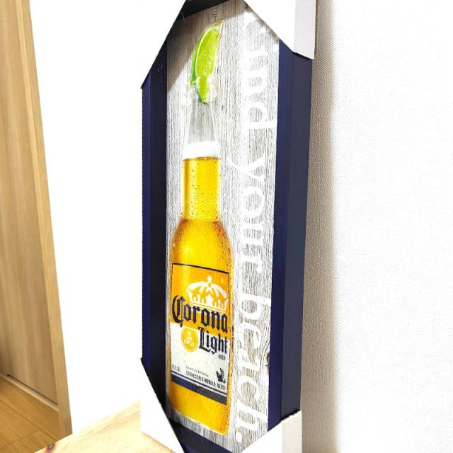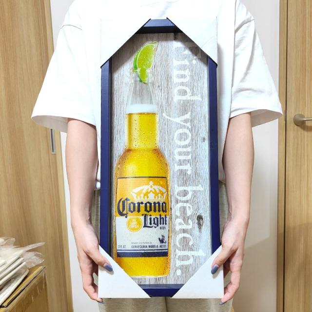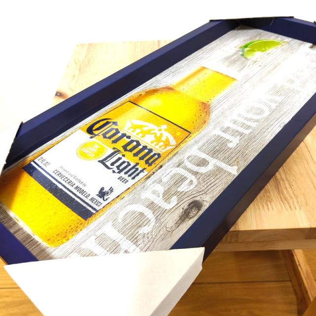 木製フレーム内にコロナビールのデザインがプリントされております。