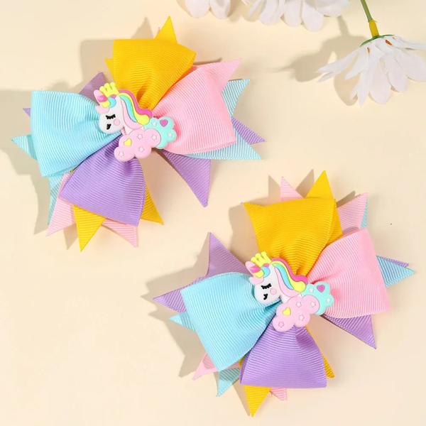 女の子のためのユニコーンヘアピン 手作りのリボンクリップ 手作りのアクセサリー