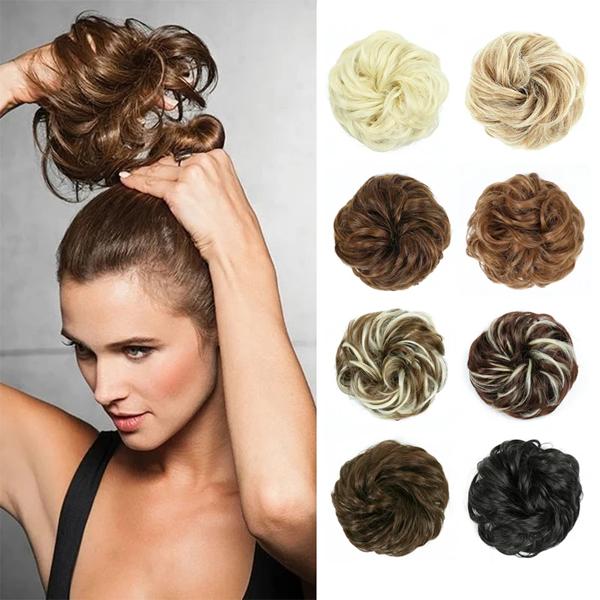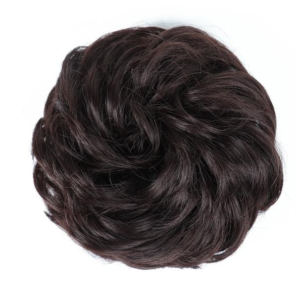 Azqueen-人工毛エクステンション パン シニヨン ゲイリー 茶色 伸縮性のあるヘアバンド